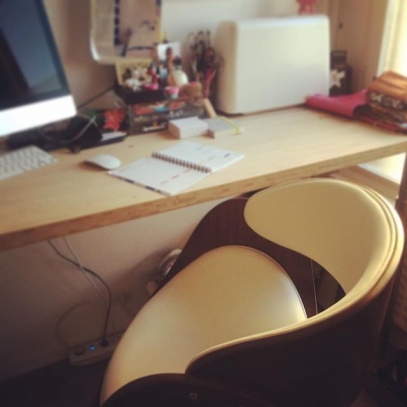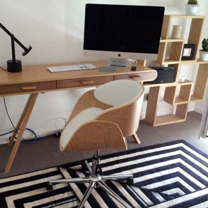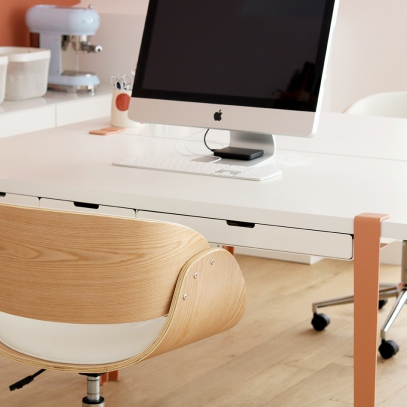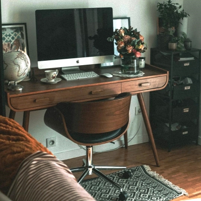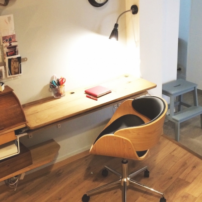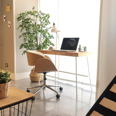¡Qué estilo tan bonito tiene esta silla de escritorio giratoria BENT! El asiento y respaldo de poliuretano negro, muy fácil de limpiar, contrastan con la estructura de madera con su acabado en nogal para un look totalmente vintage muy de moda.